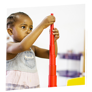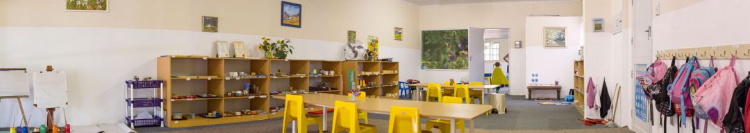 The carefully considered, child-orientated classroom creates a learning environment that accommodates choice. Children have the option of working at a beautifully designed, child-sized table or on a mat on the floor. There are well-defined spaces for each part of the curriculum, which includes Language, Mathematics, Sensorial, Art, Culture and Practical life. There is also an area where children can comfortably sit and read.